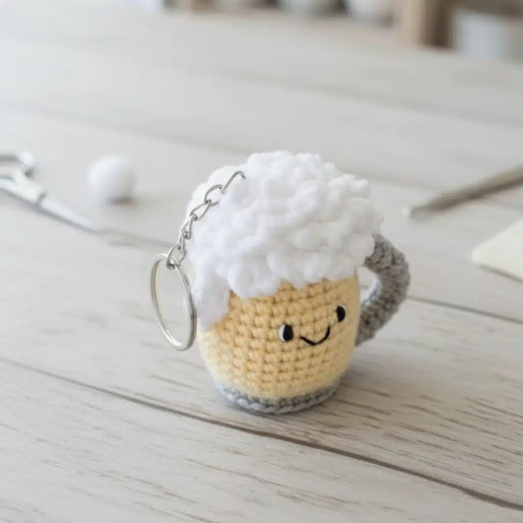 Congratulations on completing your adorable crochet beer mug keychain! This charming little project makes a fantastic gift for craft beer lovers, a quirky bag charm, or a delightful addition to your amigurumi collection. The combination of textured foam, cheerful facial features, and perfectly proportioned handle creates an irresistible miniature accessory.