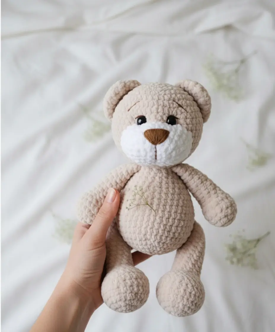 Congratulations! You’ve just created a charming handmade teddy bear. This project is a wonderful way to enjoy your crafting time and produce a lovable toy. We hope you had a fantastic time following this pattern. Happy crocheting, and don’t hesitate to explore more free patterns to continue your amigurumi adventures!