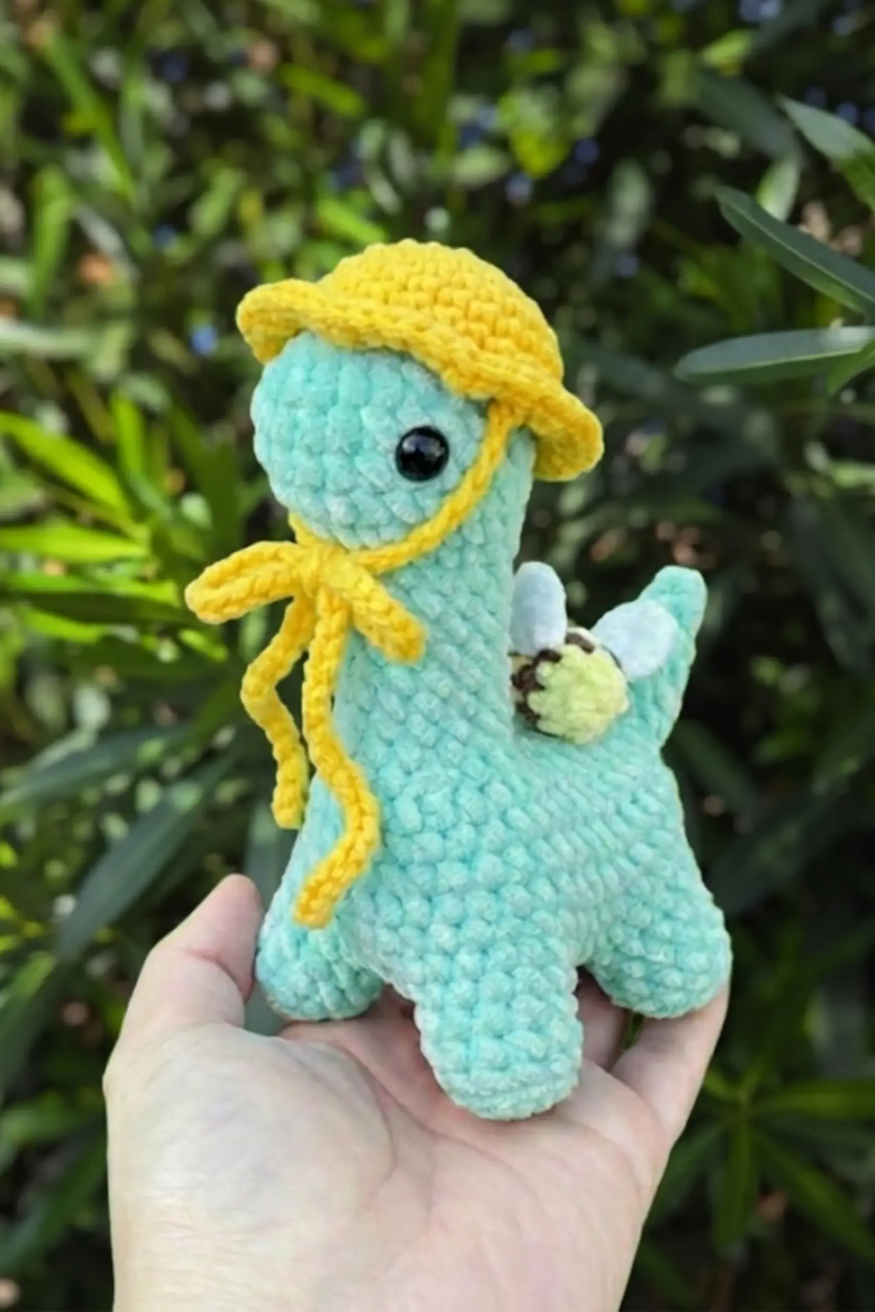 The bee elements on this pattern require color changes between green, yellow, and brown. When changing colors, carry the unused yarn along the inside of your work to avoid weaving in too many ends. The “low sew” design means most pieces are worked directly onto the body, reducing the number of separate pieces you’ll need to attach.