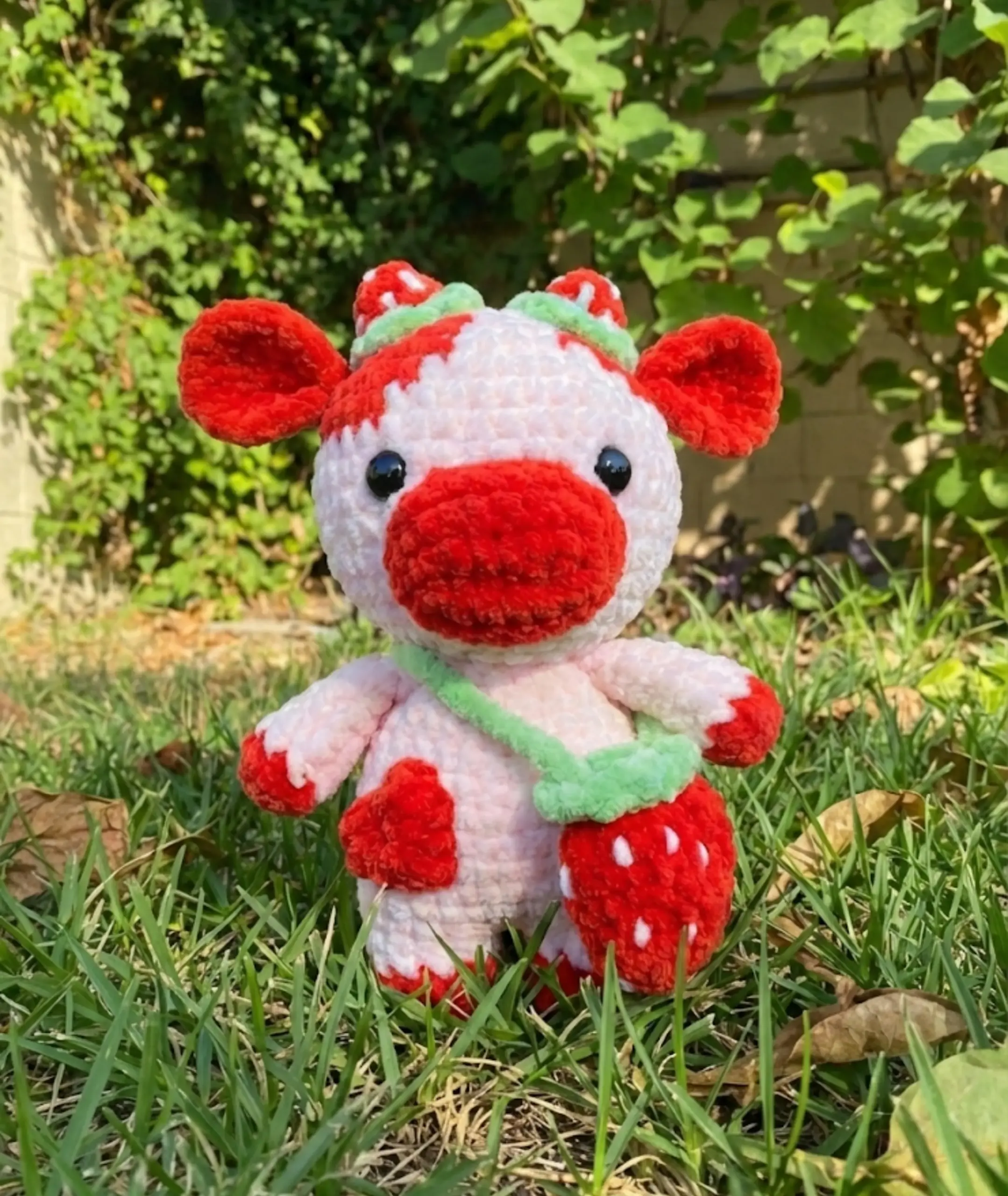Congratulations on completing your adorable strawberry cow plush! This charming creation combines classic amigurumi techniques with creative strawberry-themed details to produce a truly unique toy. The combination of soft textures, sweet pink accents, and those endearing embroidered features makes this plush perfect for gifting or displaying in your own collection.