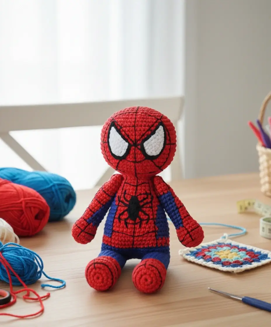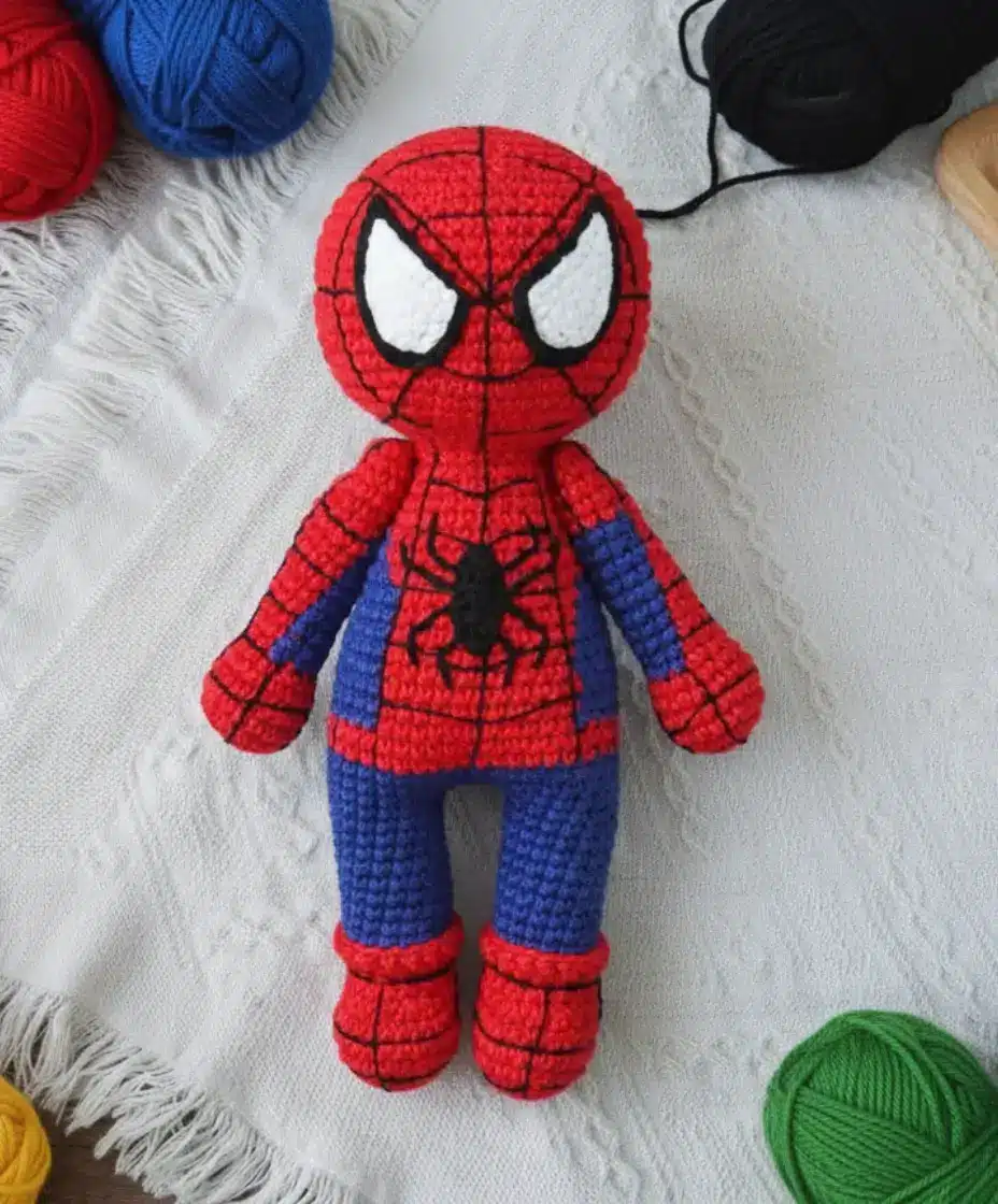 Your friendly neighborhood Spiderman is now ready to swing into action! This pattern demonstrates that creating detailed character amigurumi is achievable with patience and attention to detail. Whether you’re making this as a gift for a Marvel fan or adding to your own collection, this Spiderman amigurumi is sure to impress.