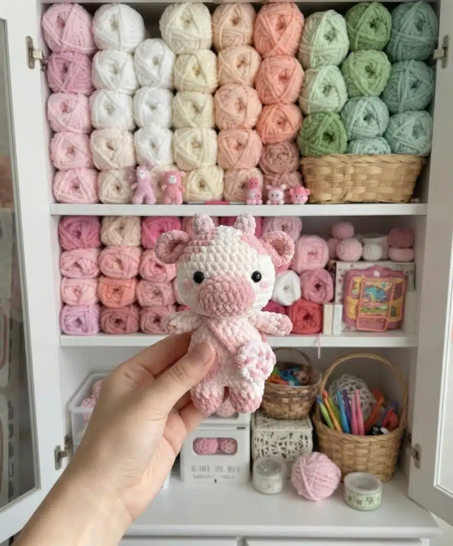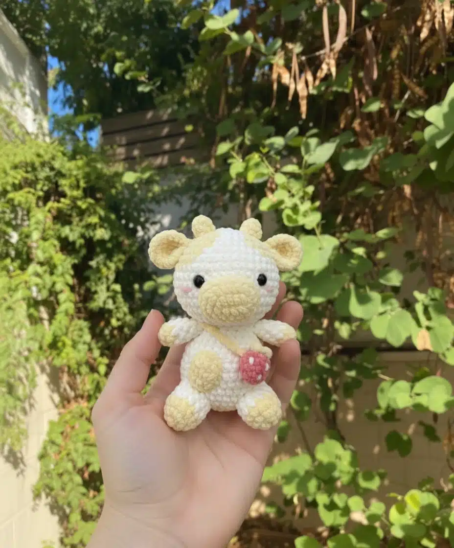 The detailed step-by-step instructions paired with helpful visual guides mean you won’t feel lost during construction. Unlike intimidating amigurumi patterns, this design breaks down each component into manageable, sequential rounds. You’ll also enjoy complete creative control—customize the colors however you imagine, experiment with different yarn shades, or stick with the classic pink strawberry aesthetic. As a bonus, the pattern includes instructions for crafting a coordinating decorative bag that turns your finished cow into a complete gift set.