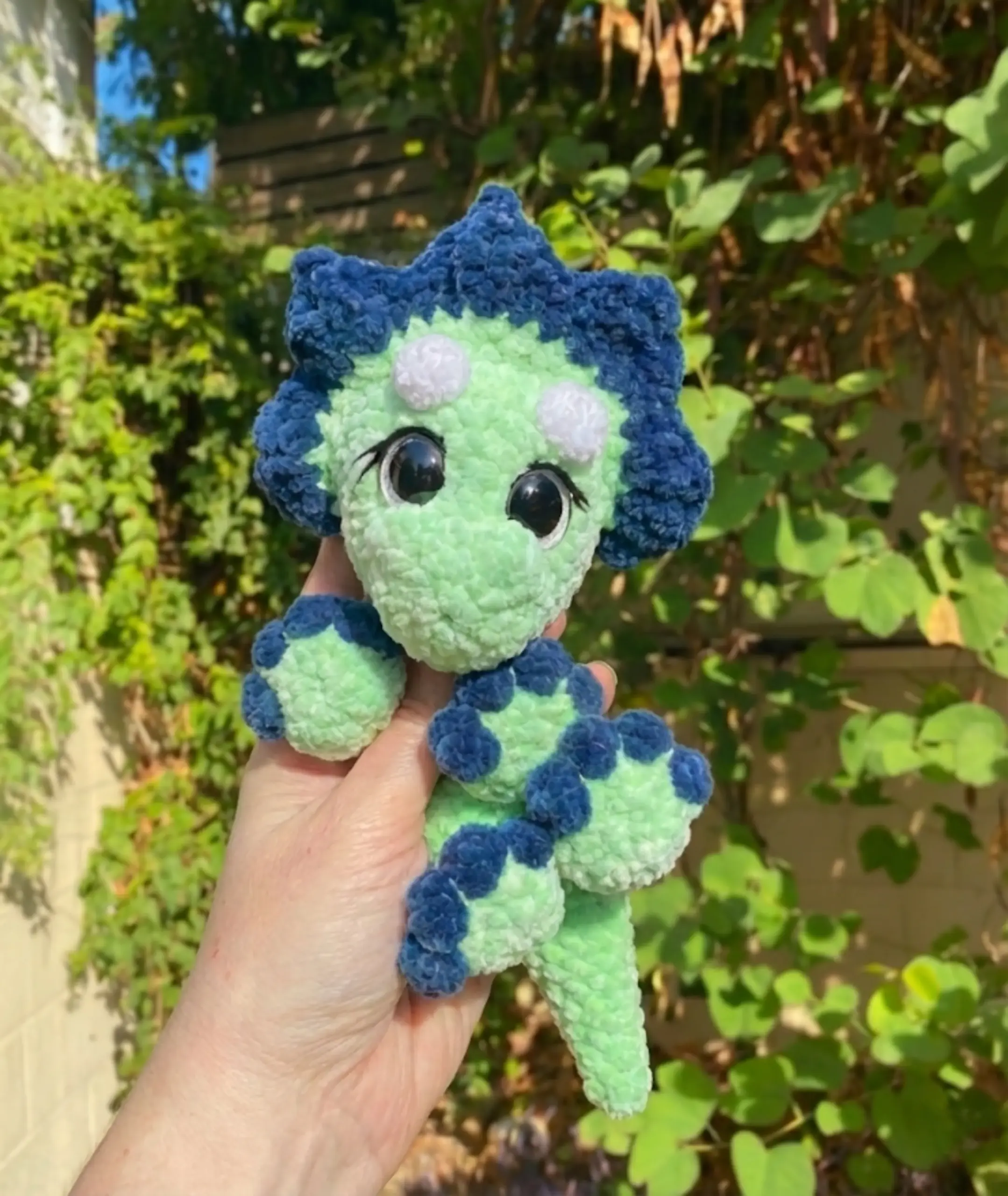 Tuddles the Triceratops Snuggler is a delightful project that combines classic amigurumi techniques with creative design elements. The bobbled feet, decorative frill, and characteristic three horns make this dinosaur truly special. Whether you’re making it as a gift for a dinosaur enthusiast or adding to your own collection of handmade treasures, this pattern offers a rewarding crafting experience.