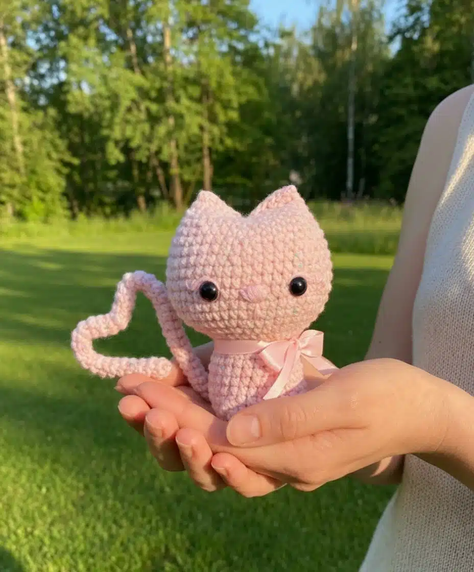 Don’t forget to experiment with different colors and ribbon styles to create your own unique version of this adorable kitten. Whether you’re making it for yourself or as a gift, this sweet little companion is sure to be treasured. Happy crocheting, and enjoy creating your beautiful handmade Valentine’s Kitten!